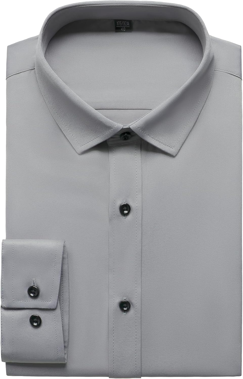 Men’s Stretch Wrinkle Free Dress Shirts Formal Wedding Prom Long Sleeve Slim Fit Button Down Shirt
