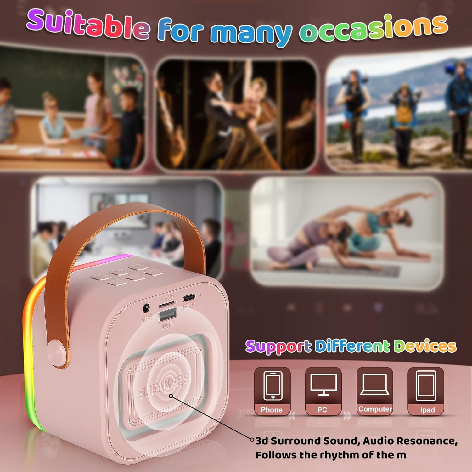 【Easy Connection and Compatibility】- Bluetooth 5.3 technology connects the Kids Karaoke Machine to your cell phone, tablet or any other device via Bluetooth. The mini karaoke machine also supports TF card as music source. Bluetooth speakers provide you with multiple ways to keep the music playing.