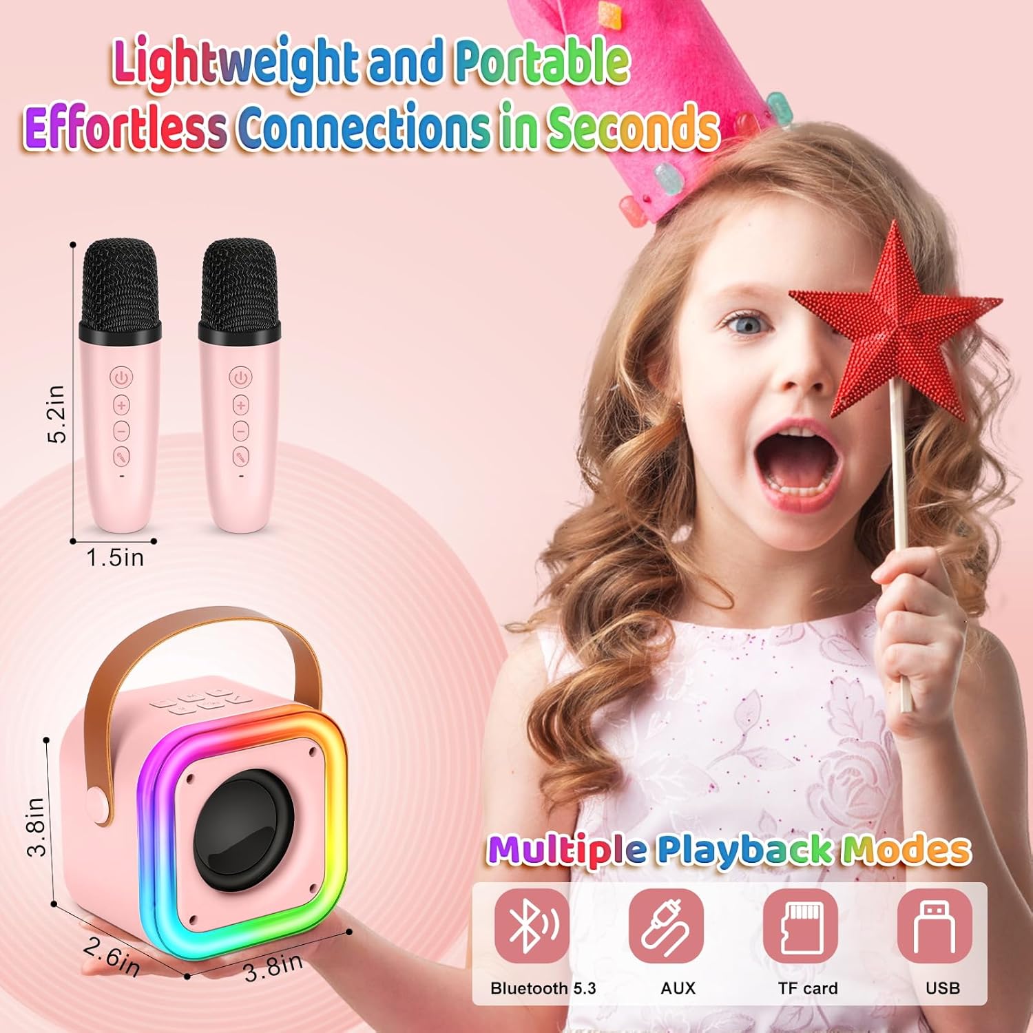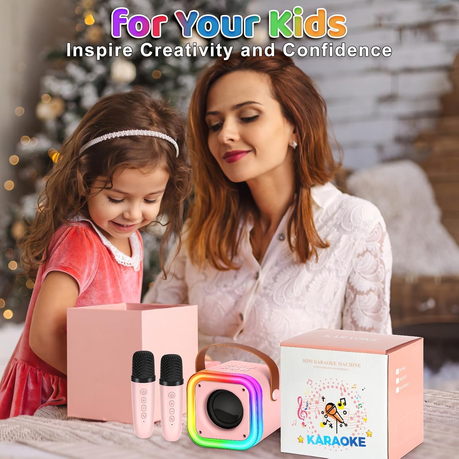 Mini Karaoke Machine for Kids, Girl Toys Gifts, Kids Karaoke Wireless Microphone for 4,5,6,7,8,9,10,11,12 Years Old Boys and Girls Christmas Party Gifts Toys (Pink)