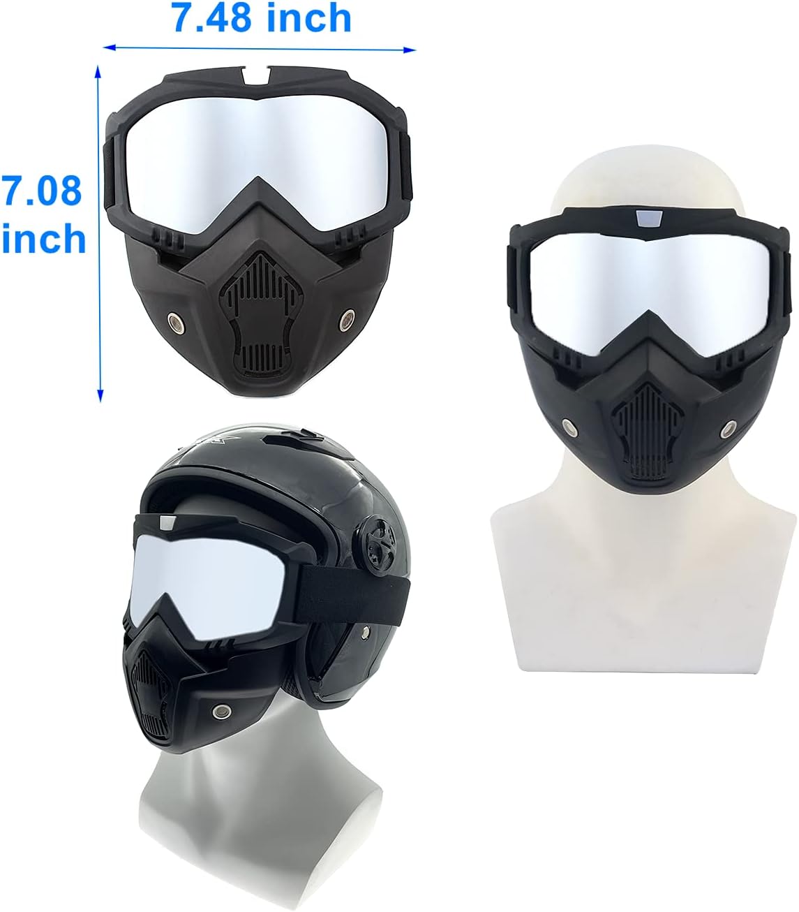 PROFESSIONAL PROTECTION — √ Motorcycle goggles with a detachable mask not only increase the protection area, but also better protect your eyes out of wind , bugs, dust, sand, and even help to prevent cold air. Also the goggles can be used separately as needed.