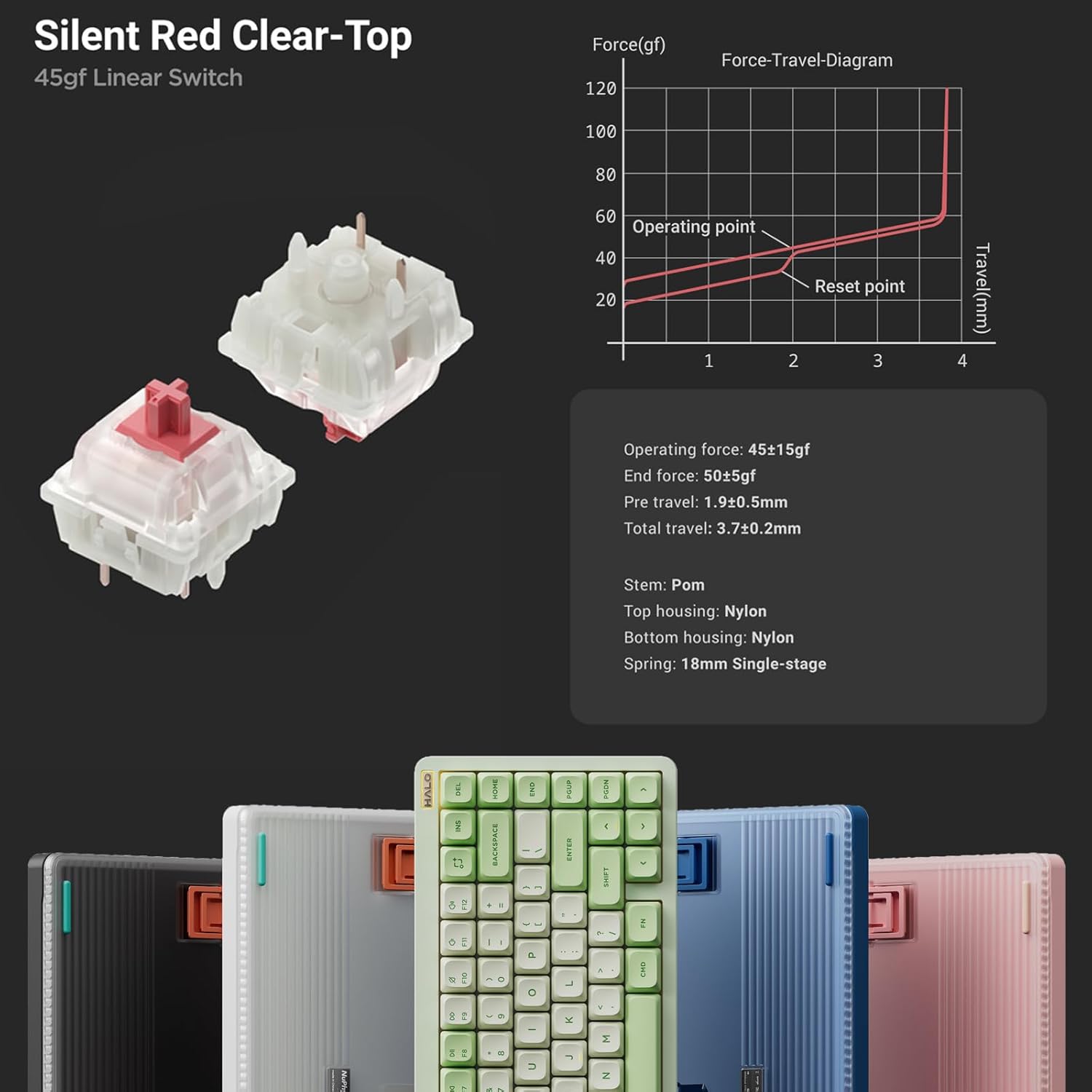 【Multiple Connectivity】Halo75 V2 mechanical keyboard supports Bluetooth/2.4GHz/USB-C connectivity and is compatible with macOS/Windows/Linux/Android/iOS. Wireless mode allows you to connect up to four devices at the same time and switch between the four devices at will, allowing you to go from office to gaming with ease.