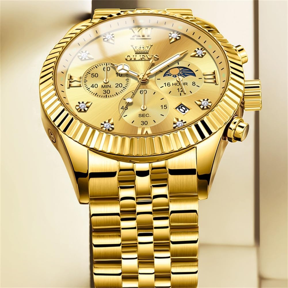 olevs mens watches chronograph luxury dress moon phase quartz stainless steel waterproof luminous business calendar wrist watch