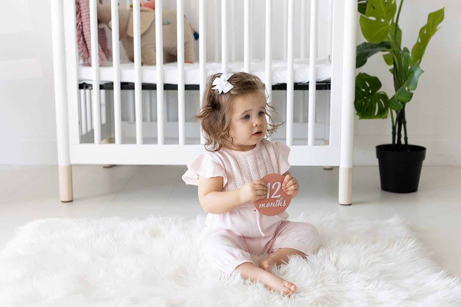 12 Photo Prop Acrylic Milestone Discs – This set includes 12 acrylic discs, each labeled from “one month” to “twelve months,” providing a beautiful way to mark your baby’s monthly milestones and create timeless memories to cherish forever.