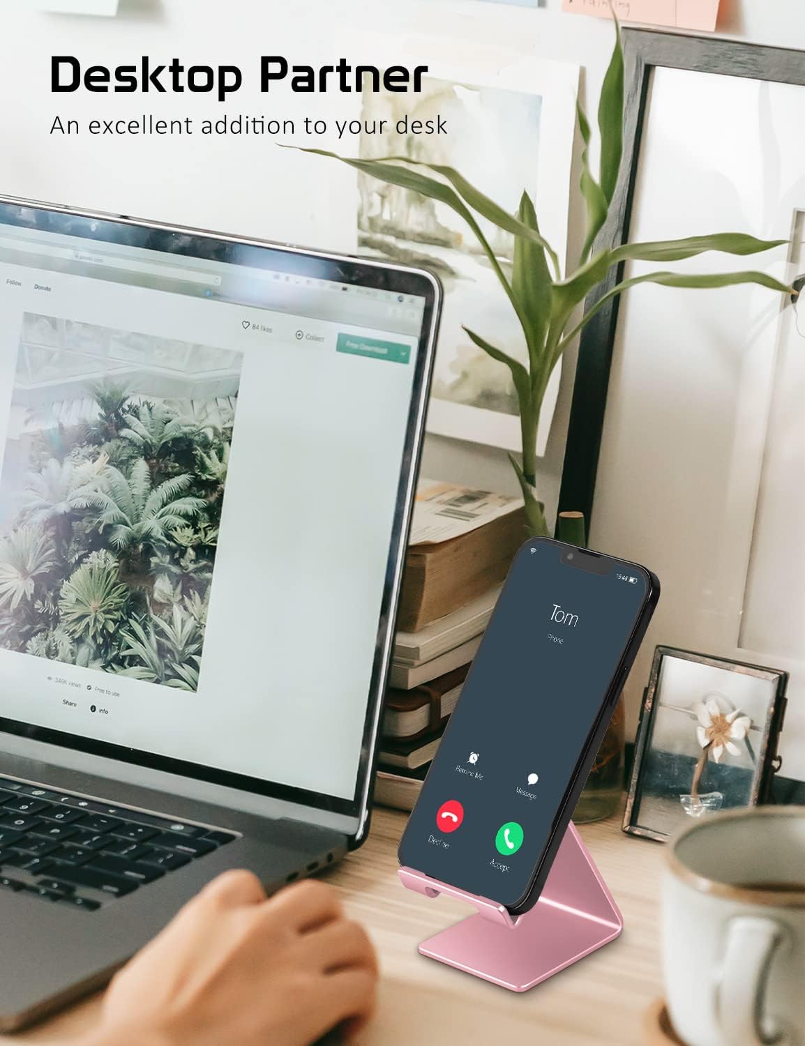 Phone Stand, Aluminum Phone Holder for iPhone 16 15 14 13 12 11 X 8 7 6 Plus 5, Samsung, Huawei, Suitable for All Smartphones, Adding a Touch of Style to Your Office Decor, Rose Gold