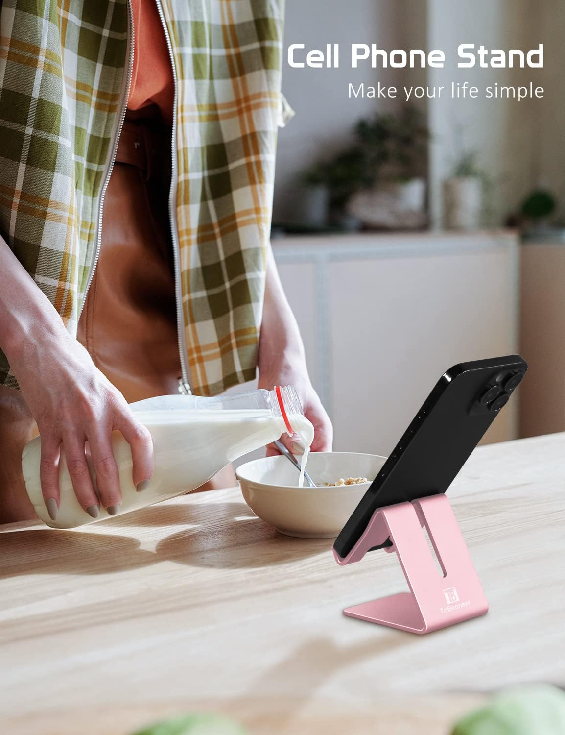 ADVANTAGES: ToBeoneer’s phone holder stand is at a suitable height, providing the perfect viewing angle for Facetime, YouTube, easy reading of messages, Facebook, emails, and following online recipes for cooking