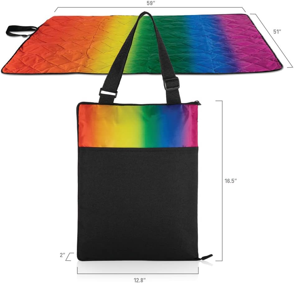 Picnic TIME NFL Vista Outdoor Picnic Blanket & Tote, Beach Blanket, Camping Blanket, (Rainbow with Black)