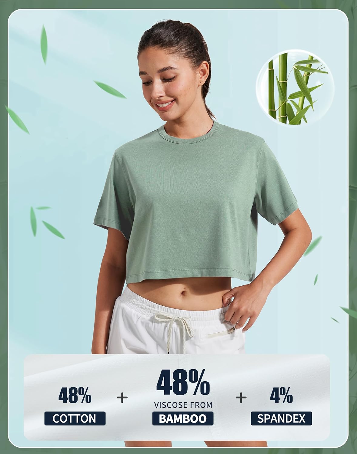 Pioneer Camp Bamboo Viscose Workout Crop Tops for Women Short Sleeve Loose T-Shirts Cropped Athletic Gym Running Yoga Tee