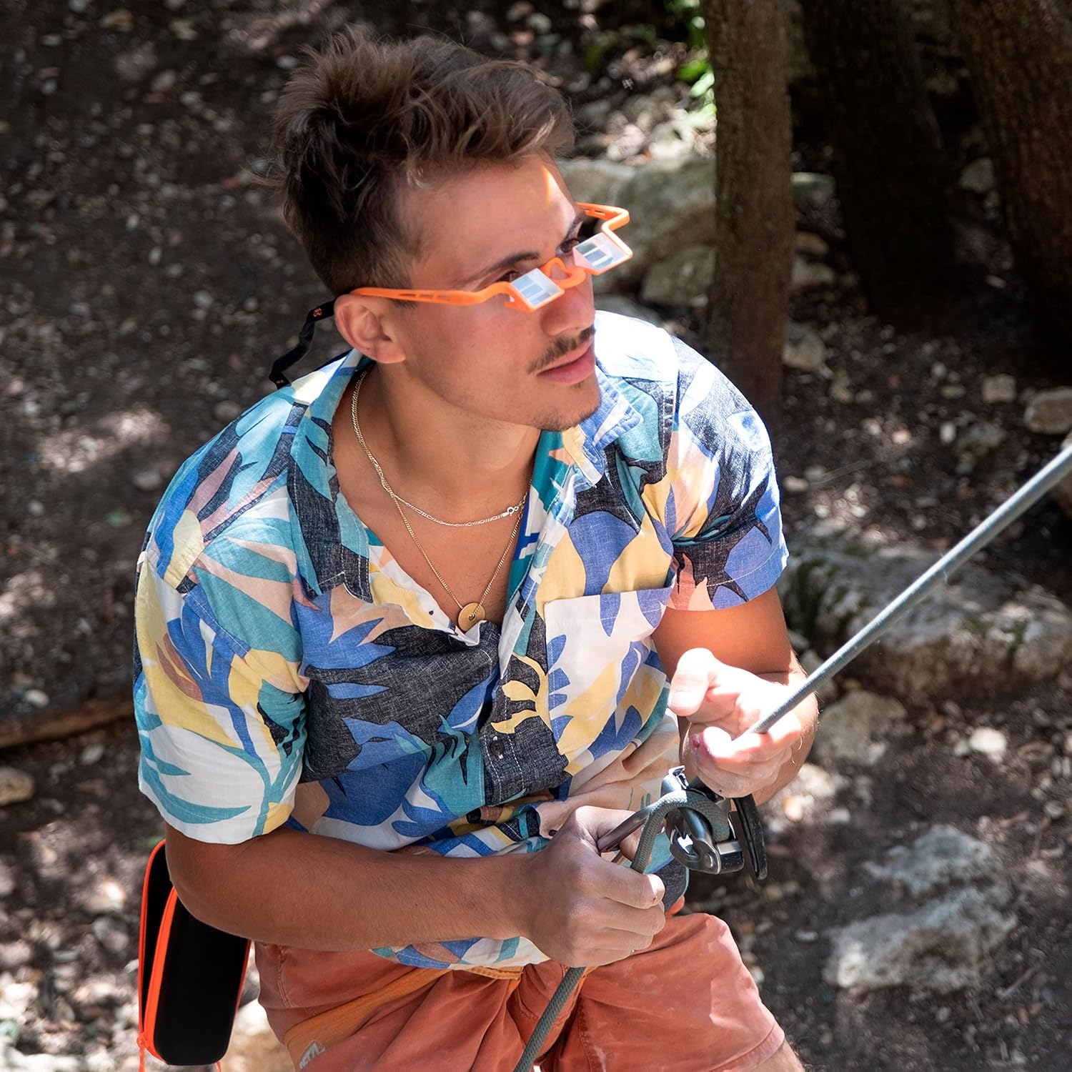 Customers find these belay glasses comfortable, particularly noting they fit well over existing prescription eyewear, and appreciate their flashy colors and lighter weight. Moreover, the glasses effectively save neck pain and offer good value for money, with one customer mentioning they’re great for frequent belaying. However, the build quality receives mixed feedback – while some find them well-built, others report they fail after a few dozen uses.