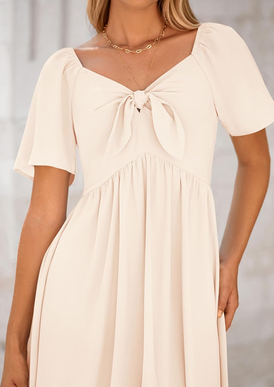 PRETTYGARDEN Summer Dress for Women 2025 Casual Short Sleeve Bow Tie V Neck Ruffle Midi Flowy Dresses