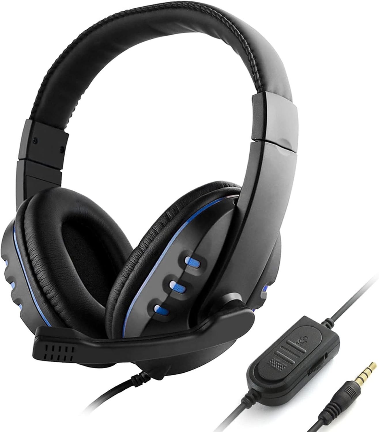 QUZHI 3.5mm Wired Gaming Headphones Over Ear Game Headset Noise Canceling Earphone with Microphone Volume Control for PC Laptop Smart Phone, Black & Blue