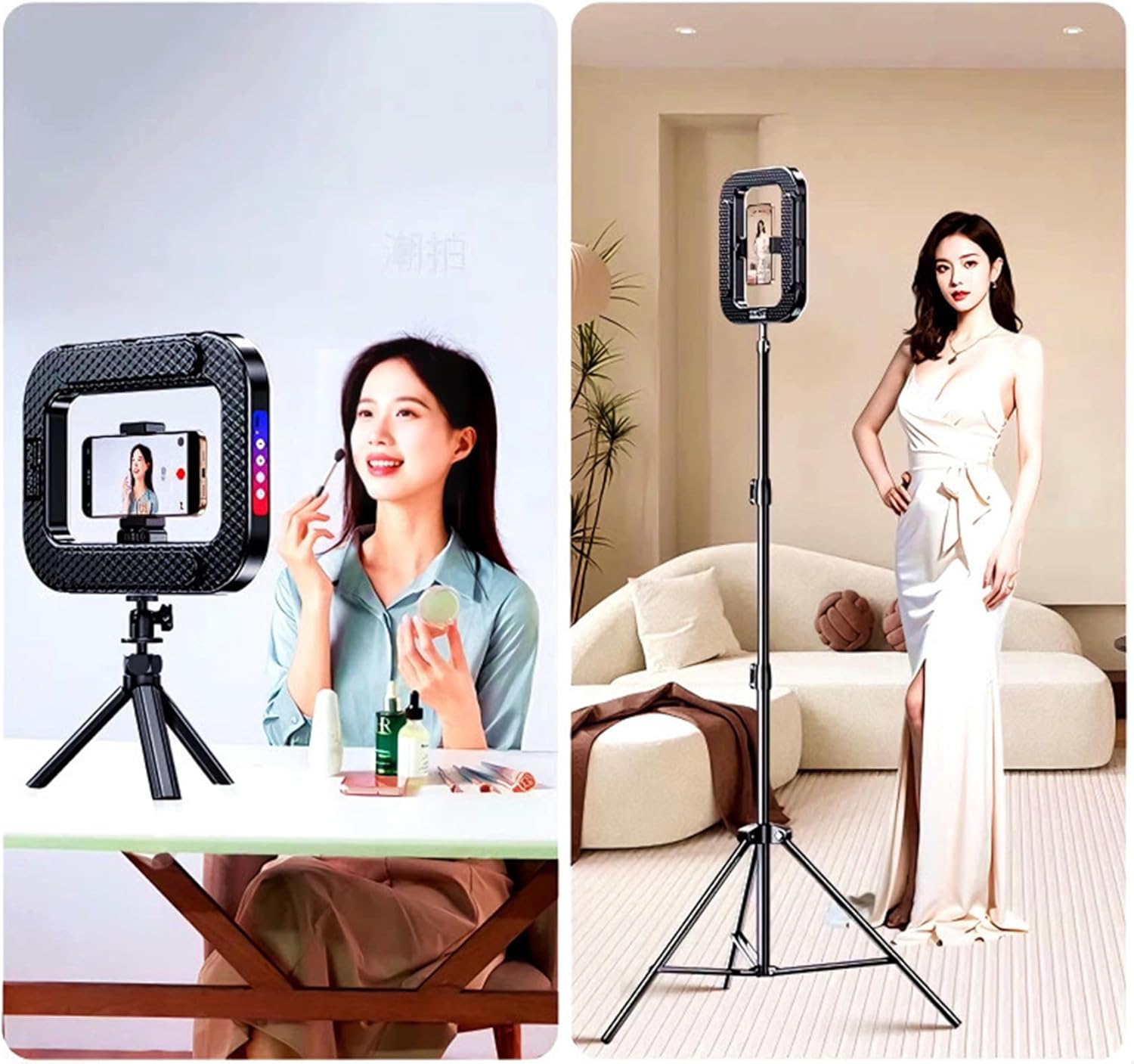 Ring lighting effect : white light, natural light, warm light, plus 45 color light modes. color temperature 2500K-8500K is adjustable,Brightness 1%-100% adjustable,45 color light modes 360° adjustable.