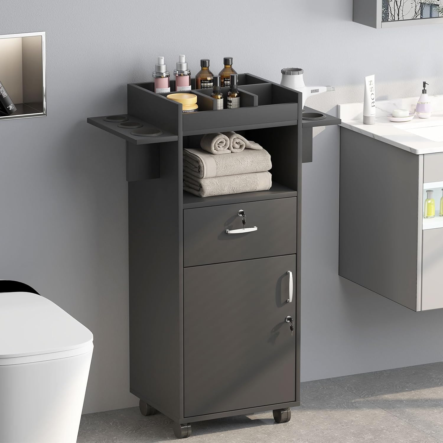 Locking Beauty Salon Storage Station Cabinet Stylist Equipment Hair Dryer Holder