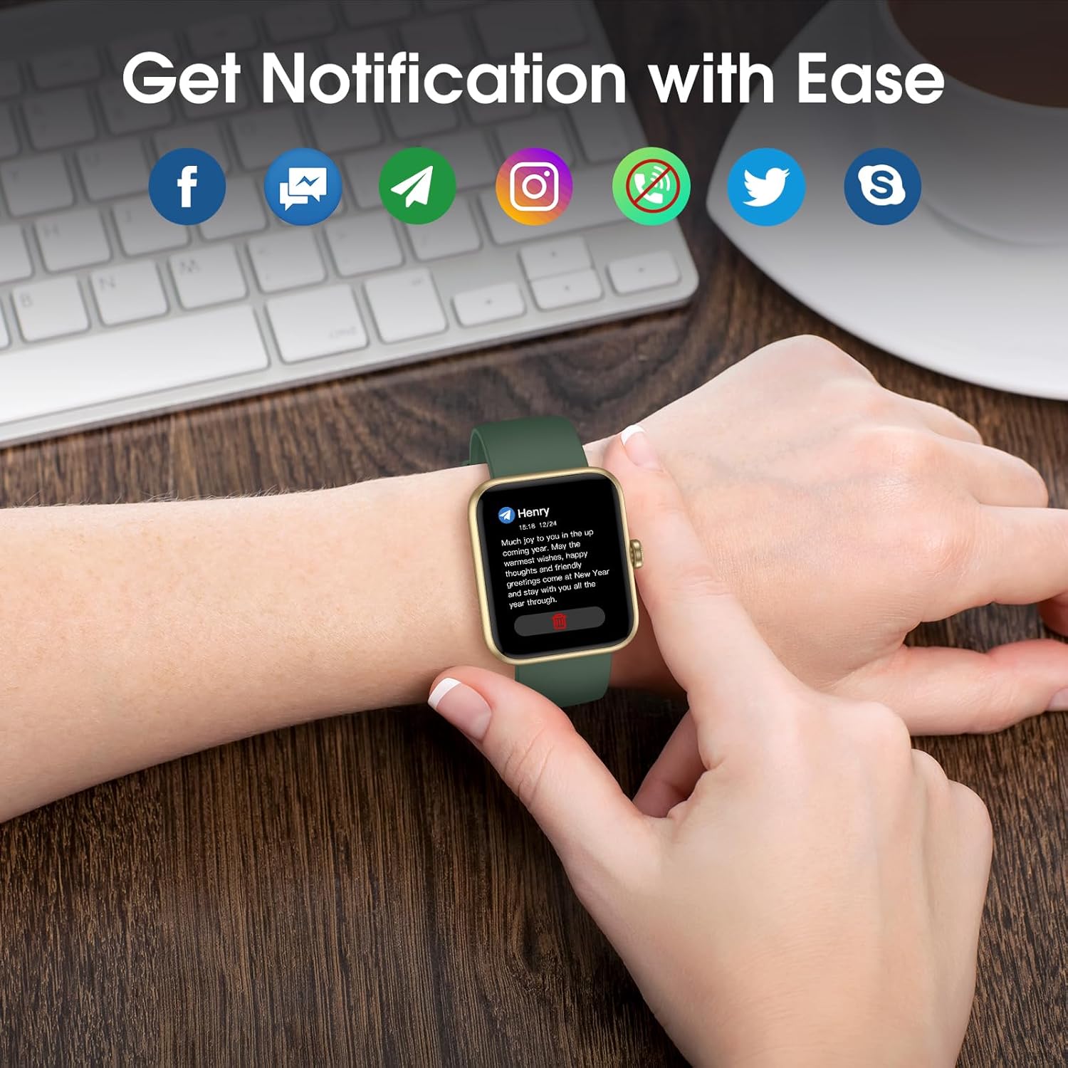 Get Notified on Smartwatches: The smart watch receives incoming call and notifications from SMS, Facebook, Instagram, Whatsapp etc, This helps you stay up-to-date and avoid missing important information. (The watch can not make calls or text back). The watch also has a sedentary reminder function and you can create reminders for drinking water, meetings, dinners, appointments and more in the alarm settings, enjoying a healthier lifestyle and a well-planned schedule.