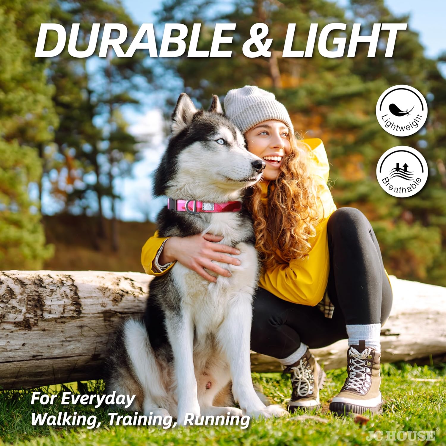 SOFT & COMFORTABLE: Dog collars is made of soft premium polyester and padded inner by Neoprene that hugs the dog’s neck softly, reducing absorb the shock when wearing or pulling. With soft padding on the throat area for additional dog comfort.