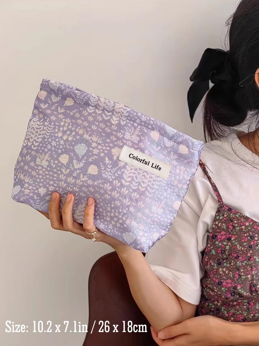 Exquisite Fabric: Made from a soft yet durable polyester-cotton blend with sturdy canvas lining, this make up bag combines comfort and longevity. The vibrant prints and detailed embroidery add a touch of elegance to your everyday routine