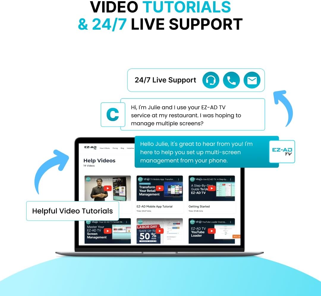 AUTO CONTENT UPDATES: Plug our EZ-AD media player into any HD Television and start showcasing product advertisements & videos instantly. Content updates wirelessly from our cloud-based website.