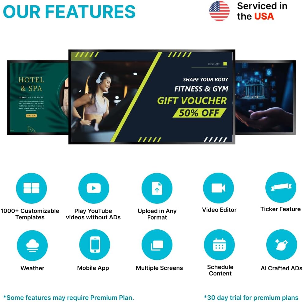 ENJOY OUR FREE PLAN: Enjoy EZ-AD TV, a powerful digital signage player, with our FREE plan, or unlock full features with our premium plans. The free plan supports all image and video formats, includes tech support, and lets you add up to 50 slides per EZ-AD TV box. Upgrade or downgrade whenever you need, according to your preferences.