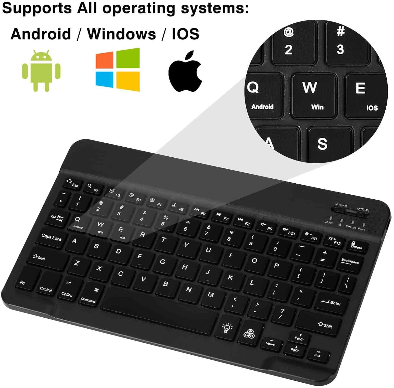 CONNECTION WITH MULTIPLE DEVICES & STABLE BLUETOOTH 5.1 — The built-in Bluetooth 5.1 technology allows the Bluetooth keyboard to easily move between devices while pairing, keeping your desktop clutter-free.Compatible with Acer Chromebook Tab 10, iPad,iPhone,iMac,MacBook,Laptop,PC,Tablets, Smartphone, Windows, IOS, Mac OS, and Android because it recognizes the system of your device and maps keys,automatically connects to your previously connected and supports all major operating systems.