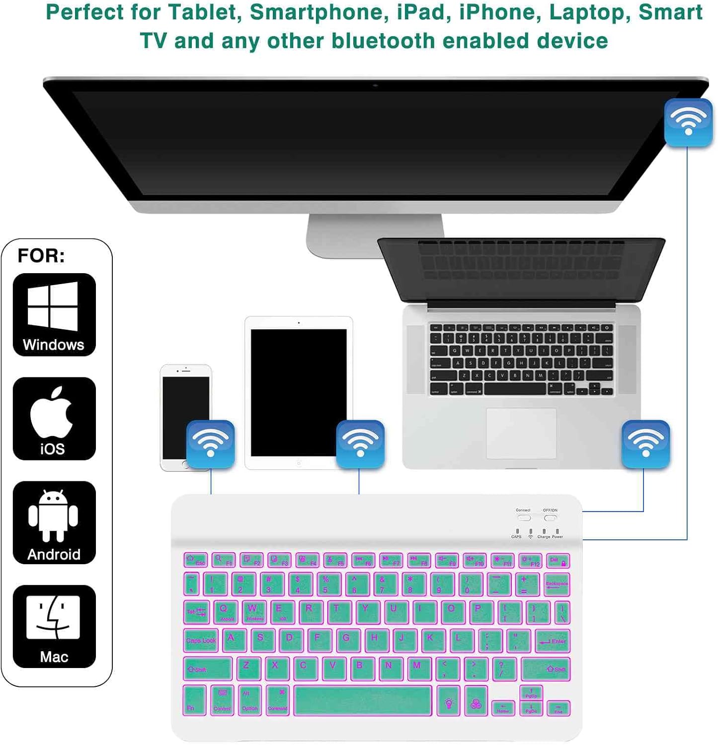 UX030 Lightweight Ergonomic Keyboard with Background RGB Light, Multi Device slim Rechargeable Keyboard Bluetooth 5.1 and 2.4GHz Stable Connection Keyboard Compatible with Amazon Fire HD 10 (2019)