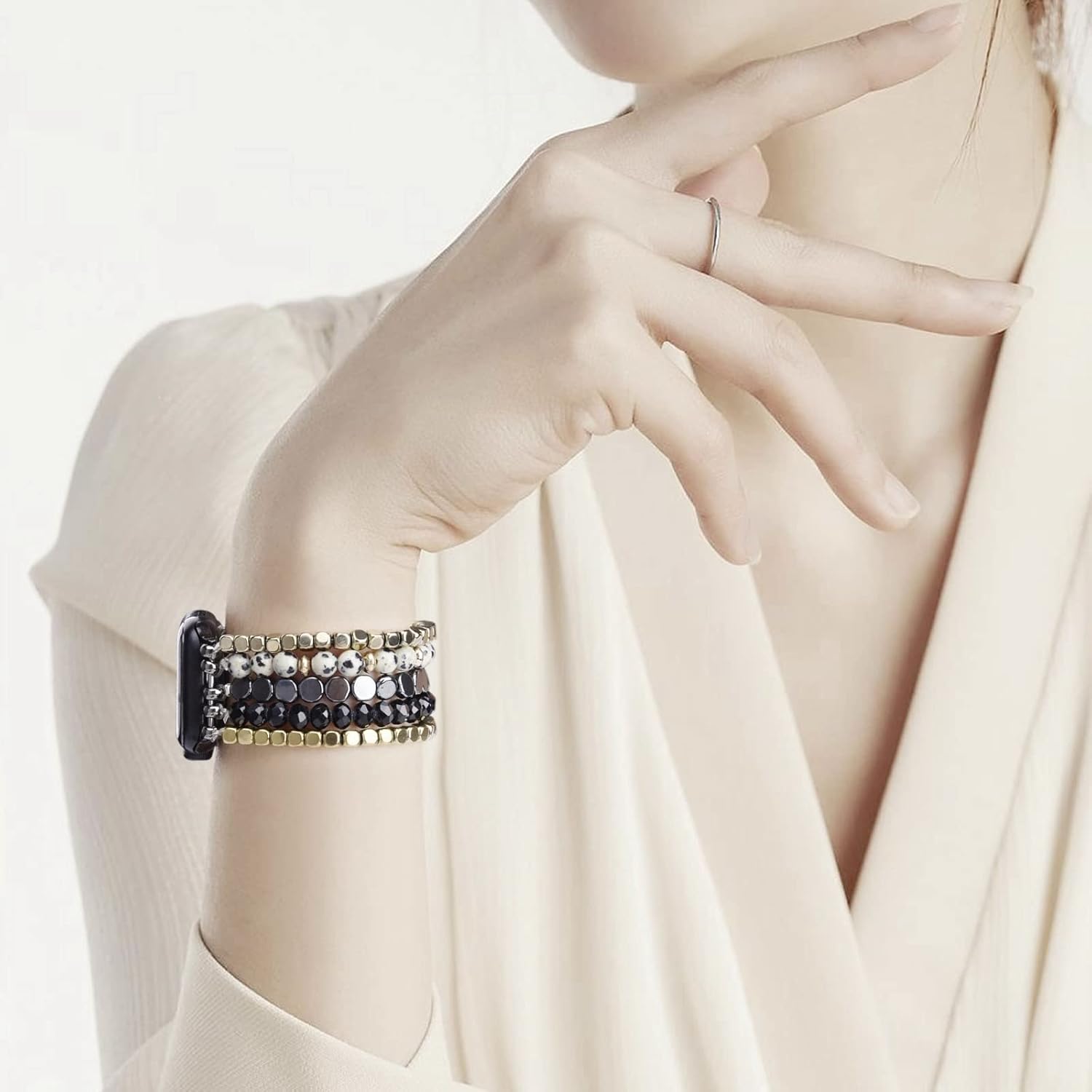 ✿Unique Cute Boho Beaded Bracelet Compatible with Apple Watch 38mm/40mm/41mm/42mm: Made of high-quality natural stone, metal beads, and colorful crystals, our beaded Apple watch band with natural stones cool to the touch helps to release stress and make the anxiety calm down