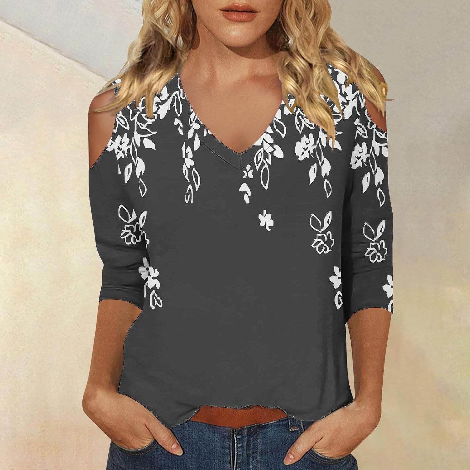 Women 3/4 Sleeve Tops Loose Fit Round Neck Off Shoulder Tops Casual Cute Fashion T-Shirts for Women