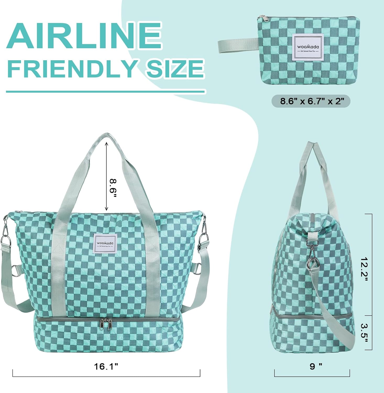 WOOMADA Weekender Bag for Women, Travel Duffel Bags with Shoe Compartment & Wet Pocket, Personal Item Bag for Airlines