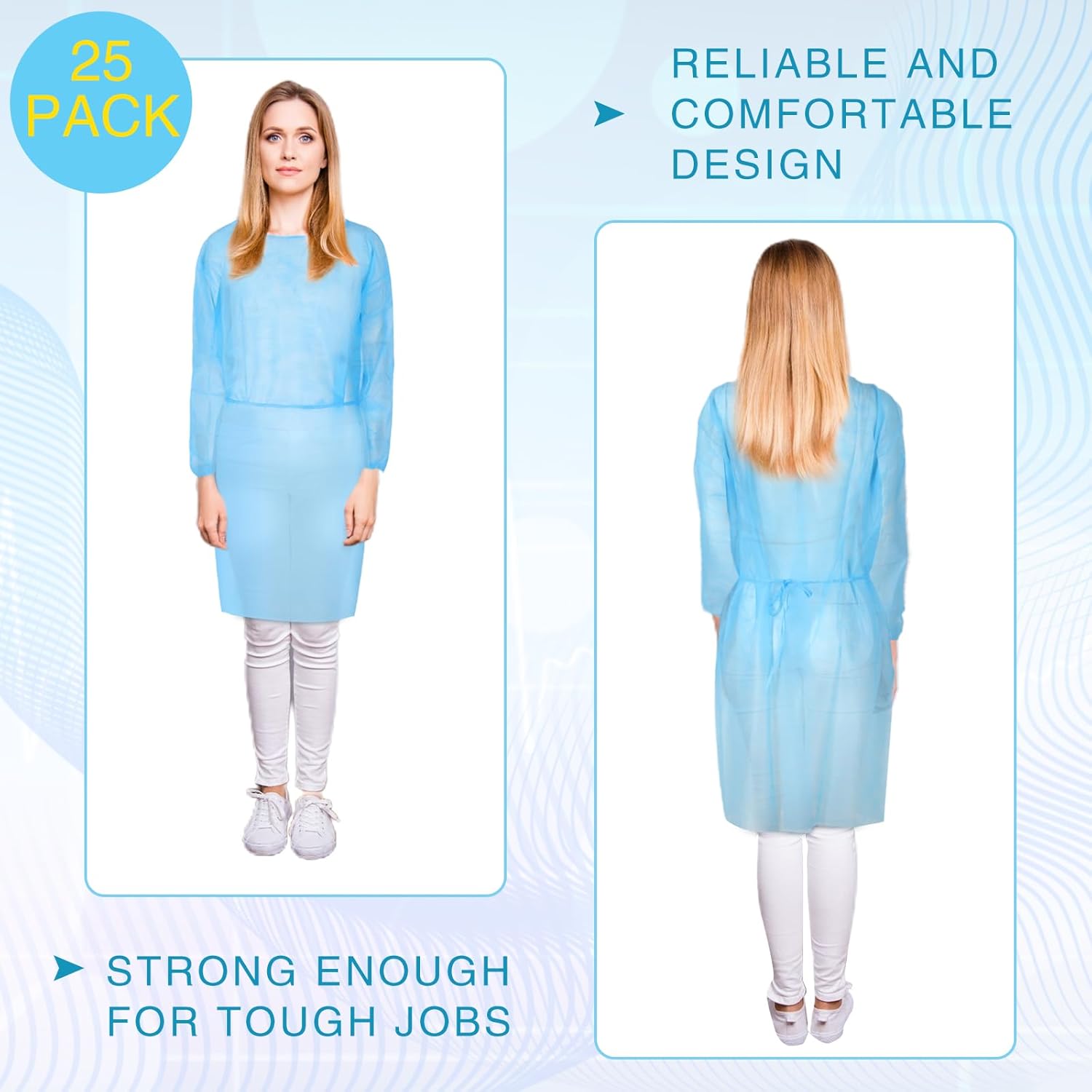 Combination of Isolation Gown and Cap: you will receive 25 pieces of disposable isolation gowns, and 25 pieces of 21 inch disposable bouffant caps, with elastic edges, suitable for both women and men; Sufficient quantity to meet your different uses