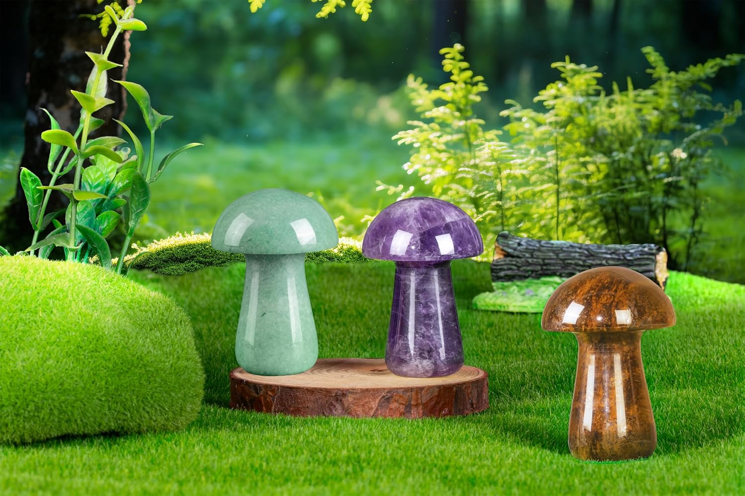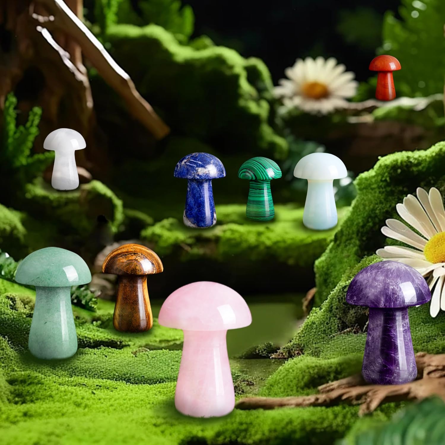 【Mushroom Ornaments】These mushroom decors are made of crystals, carved by hand, each one is vivid. Size of Mushroom Decor: height: 2″/50mm(approx.); weight: 50-60g/pcs. Specification: 1pcs.