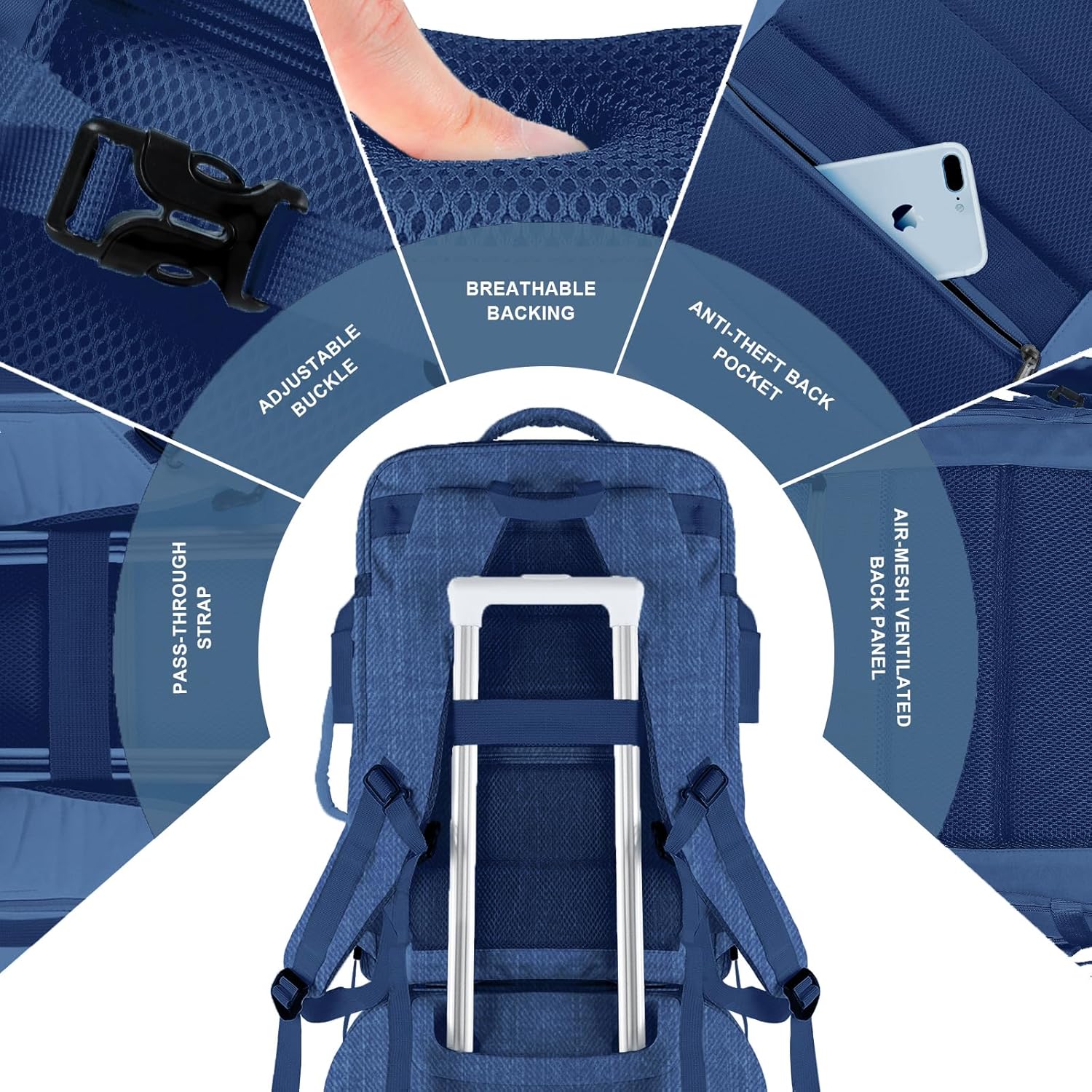 ▶【Convenient USB Port】:Large carry on backpack for women with built in USB charger outside and built in charging cable inside, this suitcase travel backpack for travel offers you a more convenient way to charge your phone while walking.Please note that this travel backpack does not come with a power bank and you will need to bring your own!!
