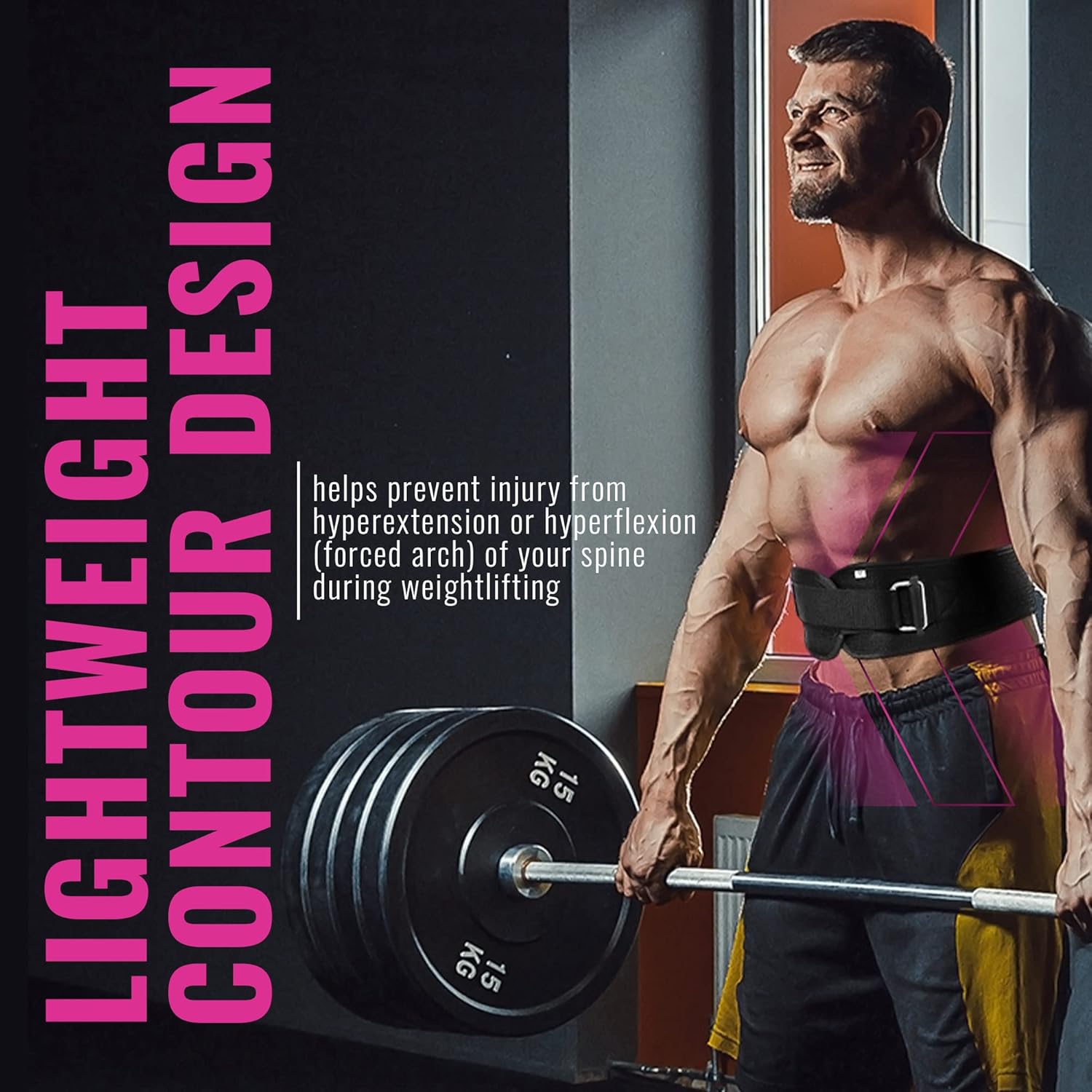 DESIGNED FOR OPTIMAL COMFORT AND FUNCTION: With its lightweight contoured design, our weightlifting belt helps prevent injury from hyperextension or hyperflexion (forced arch) of your spine during weightlifting. By offering support to your abdominal wall and your lumbar vertebrae, this lifting belt promotes safe lifting technique for Back Squats, Power Cleans, Deadlifts, Clean and Jerks, Overhead Squats and even heavy lifting at work or at home.